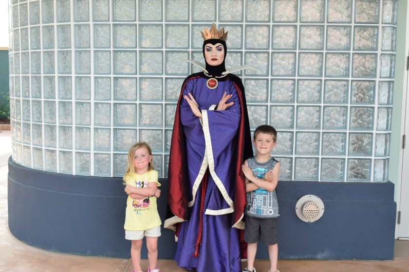 Next, we’ll try to find the same character meeting we did last year. Another success. We missed out on pictures with Robin Hood, but my daughter was having so much fun with Goofy’s son, Max. They even shared a dance. The Evil Queen was there again and tried to teach the kids her evil ways. Minnie was trying to get Grumpy’s affection, but he just thought she was shaking hands. Finally he gave her a peck on her hand and she blushed. And Aladdin wanted to take us away on to a far, far away land.