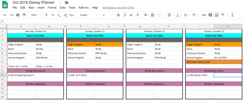 Although I’m not sure why I made changes I’m actually pretty happy with our plan as it’s set up just looking to make a couple tweaks. Once our FastPass reservations are in place that will fine tune the trip.