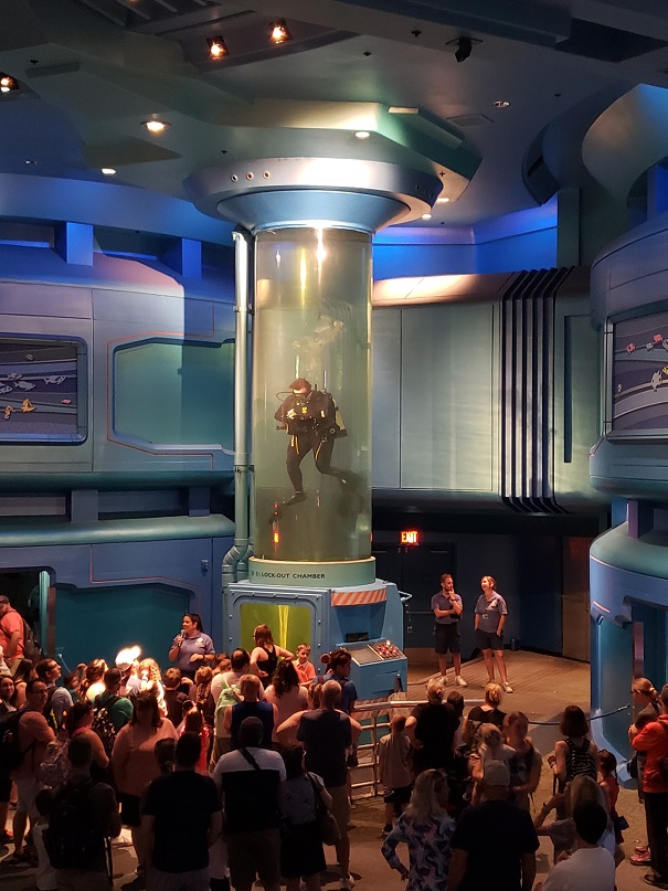 About 90 minutes before our dining reservations we made our way to Epcot. Yesterday had proven that the walk is very quick and we had no reason to rush.  Wait times around the park were low. We took a ride on the Seas with Nemo, checked out the aquarium, and watch the diver for a while after the ride.
