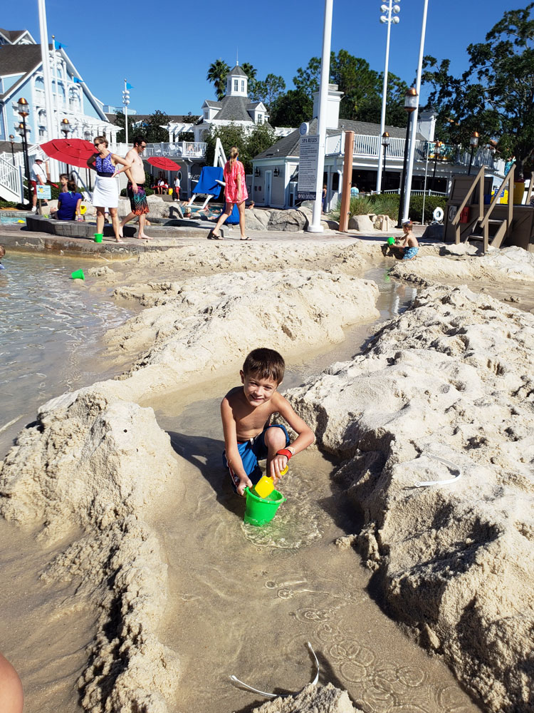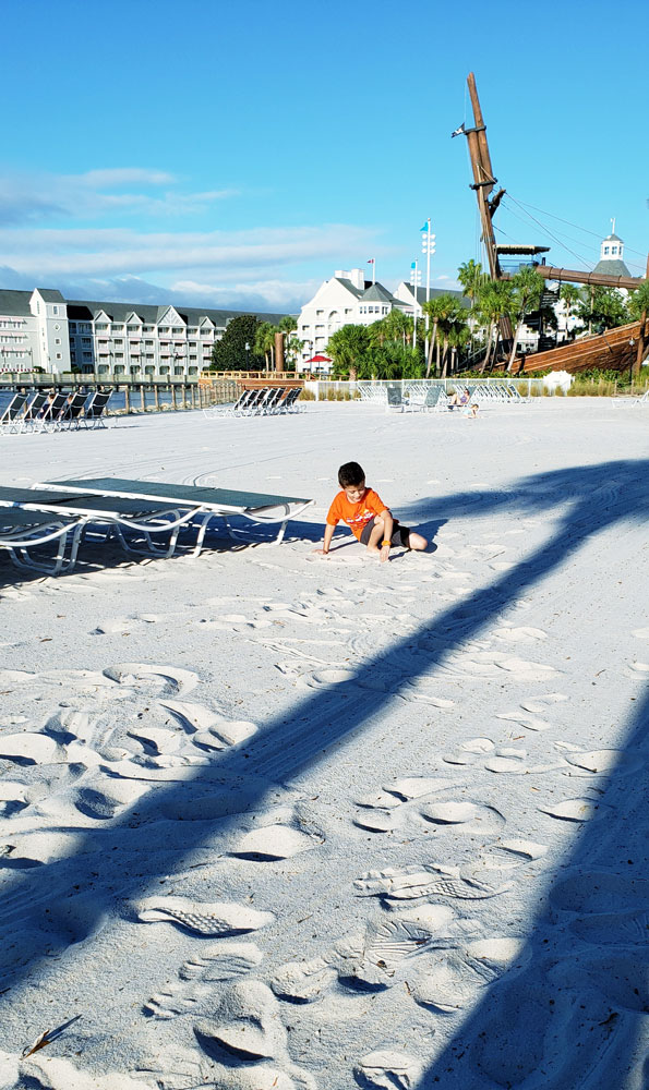 I also loved the sand. It was not fine beach sand and didn’t follow us back to our room. It also felt like a massage on my feet after walking around the in the parks. It was a comfy place to sit and watch the kids while the played and had amazing views of the resort property.
