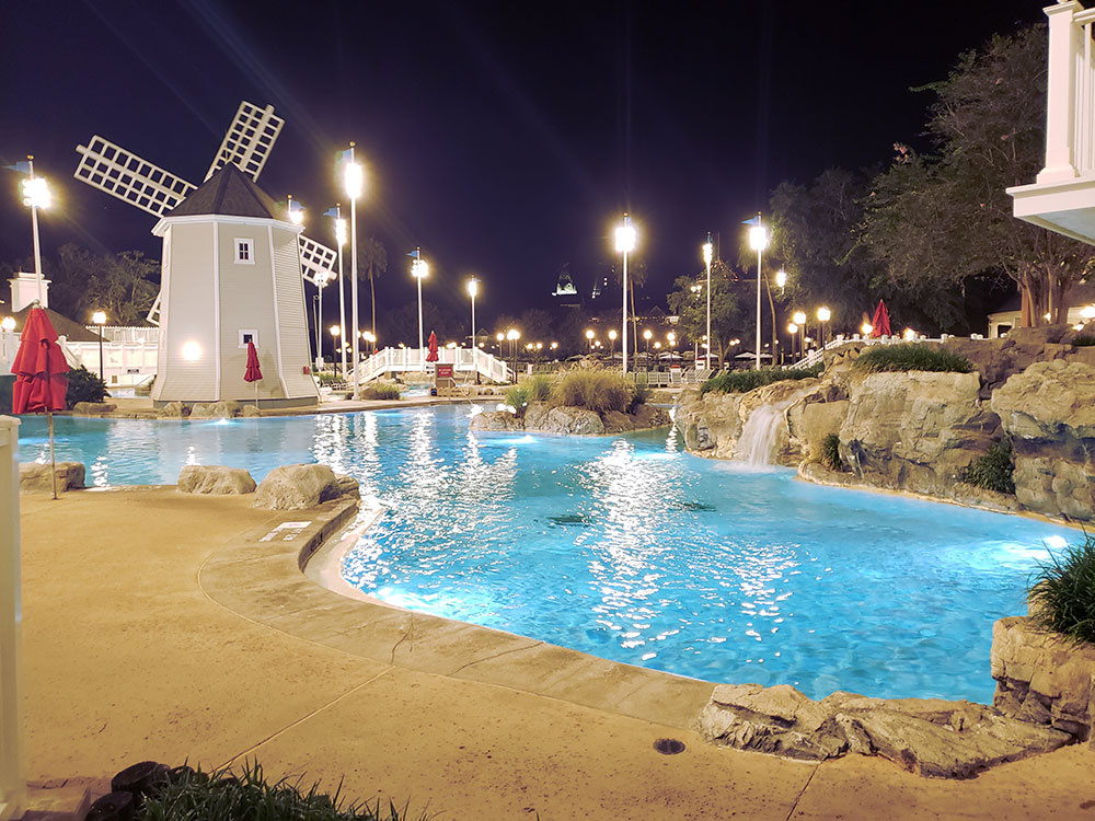 We had first floor rooms on both sides of the resort. There was a small patio perfect for the kids to eat breakfast or snacks. We had a view of a “quiet” pool in each room as well. They were always very quiet with a maximum of three families at one time. Generally, it was only one group at the pool, if any. We did swim at the Yacht Club’s quiet pool once, but we preferred Stormalong Bay much more.