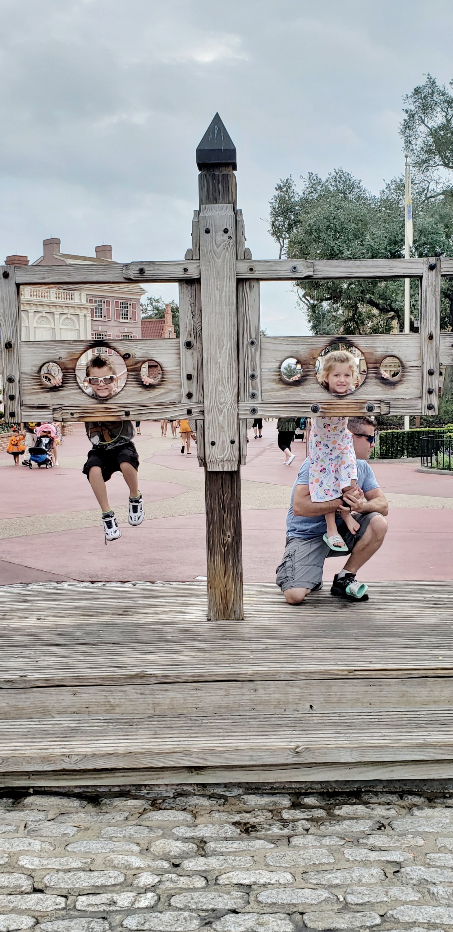 During our lunch, the rain had passed. We still made a stop inside at Mickey’s Philharmagic just because it’s too cute to skip. Next up was another FastPass this time for our first family ride on Big Thunder Mountain Railroad. We spent some time taking pictures around the park.