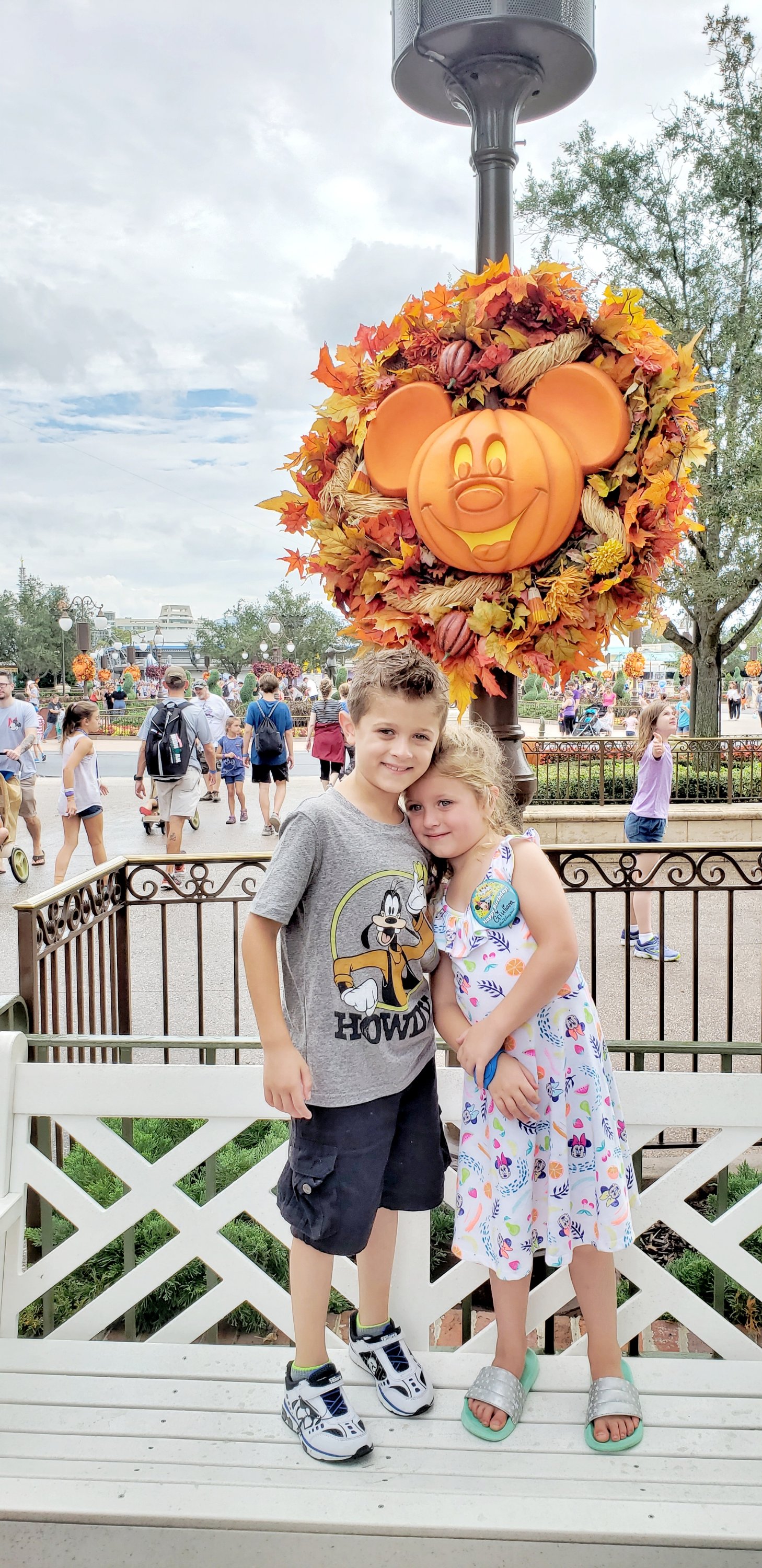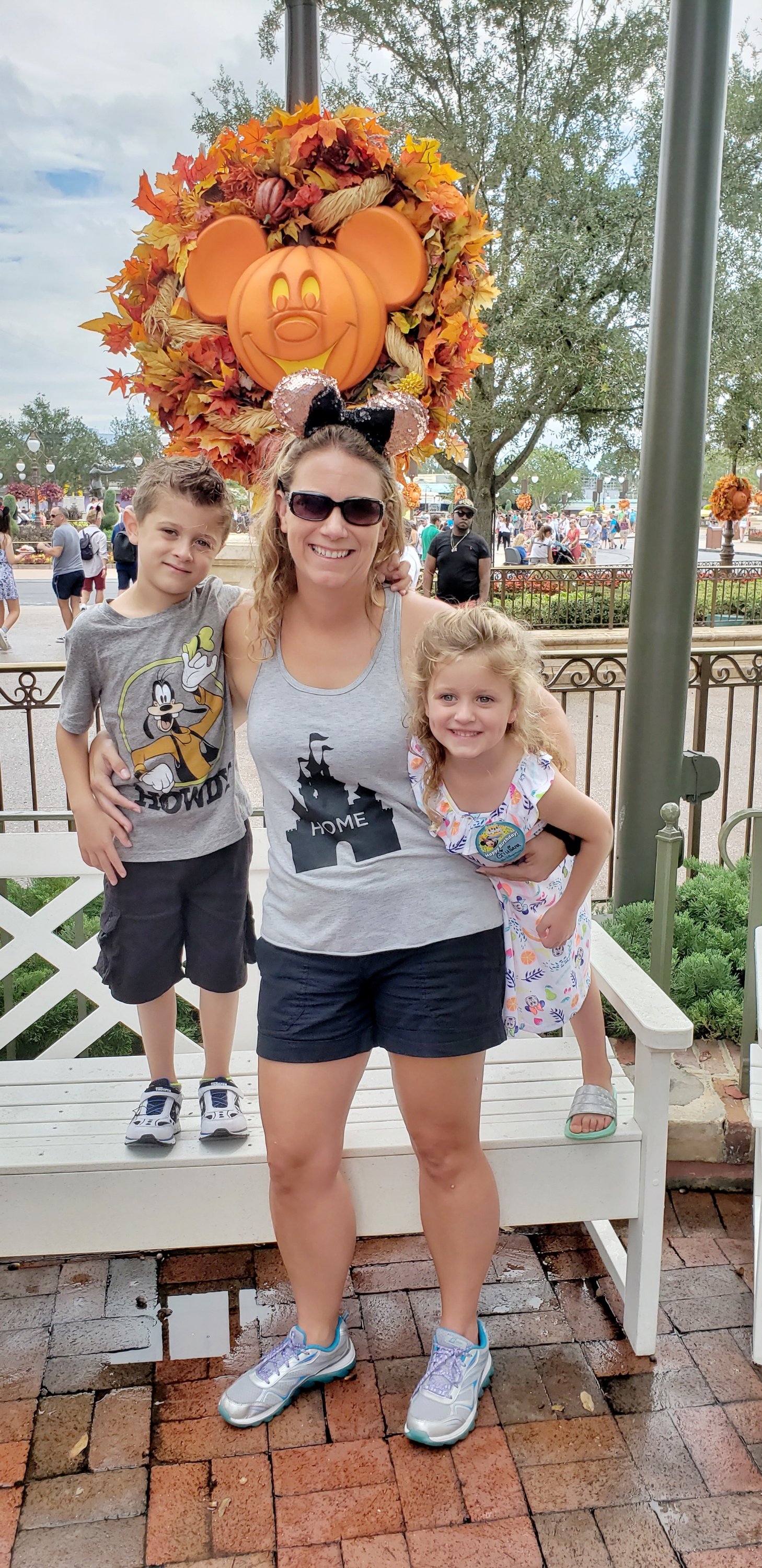 While we were in line Grumpy brought up a rather random idea– he needed a haircut and didn’t want to wait until we got home. He asked, “Isn’t that barber shop somewhere by the entrance.” At least he remembers something. Harmony Barber Shop is located near the park entrance. I warned him they might not have any availability for walk-ins but we all made our way to Main Street. Grumpy snapped a few pictures of me with the kids, and of course, a Mickey pumpkin along the way before we split up again. This time he and Peanut went down Main Street while Diva and I had fun with a PhotoPass photographer.