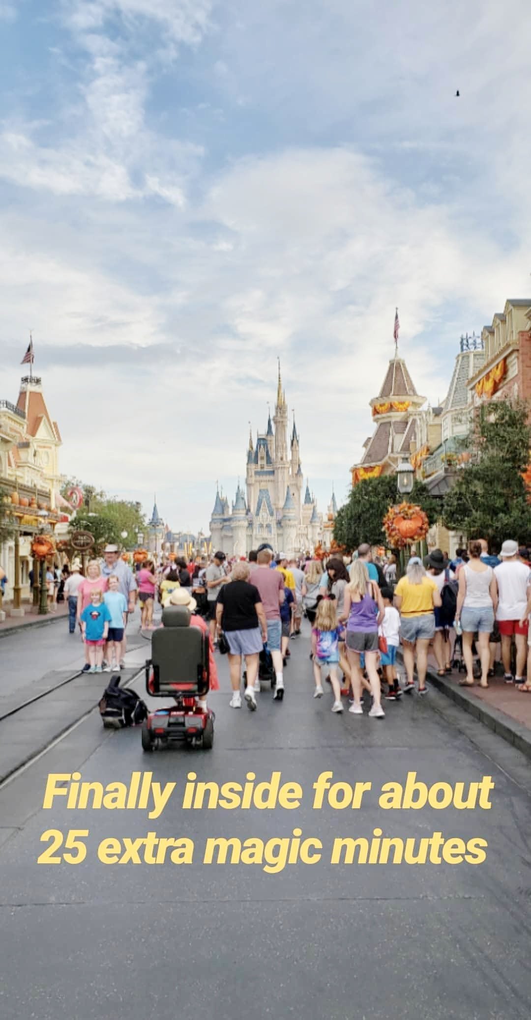 The best plans don’t always work out. Morning Extra Magic Hours are my favorite, especially at Magic Kingdom. After our doubling our fireworks viewing the prior evening we were moving at a bit slow in the moring and didn’t make it on the bus until just after 8:00AM. We arrived at Magic Kingdom at 8:16AM. Since we were so late bag check took a little while and we were finally making our way into the park at 8:33AM. My Instagram story posted as we walked down Main Street sarcastically noted the truth: we were in the park for extra magic minutes by that point.
