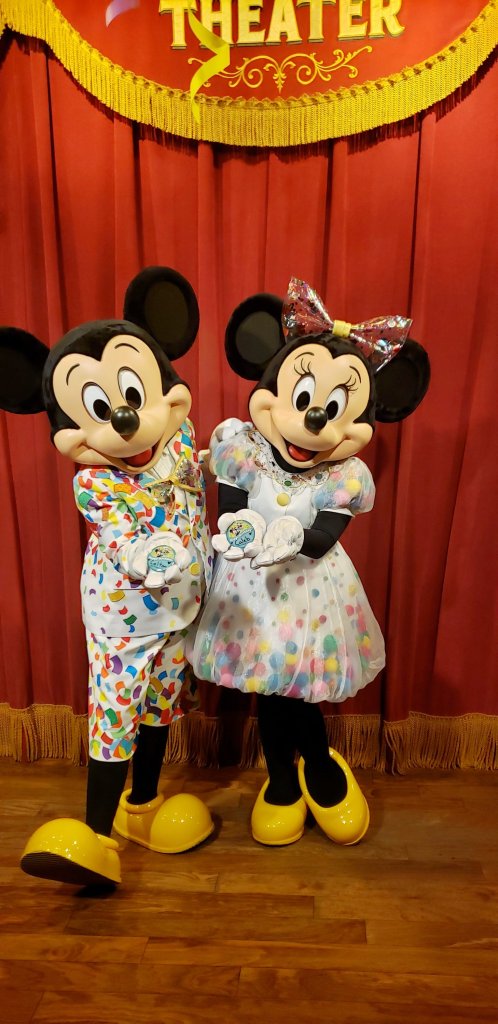 Since there was no urgency in any of our plans we stopped to do something special for some friends at home. We went to City Hall for two birthday buttons for some very special twins that were celebrating their 1st birthday that day then we march across the way to Town Square Theater to meet Mickey & Minnie in the celebration outfits. The twins would be celebrating their birthday with a Mickey-themed party and they got a very special birthday message straight from the Mickey himself!