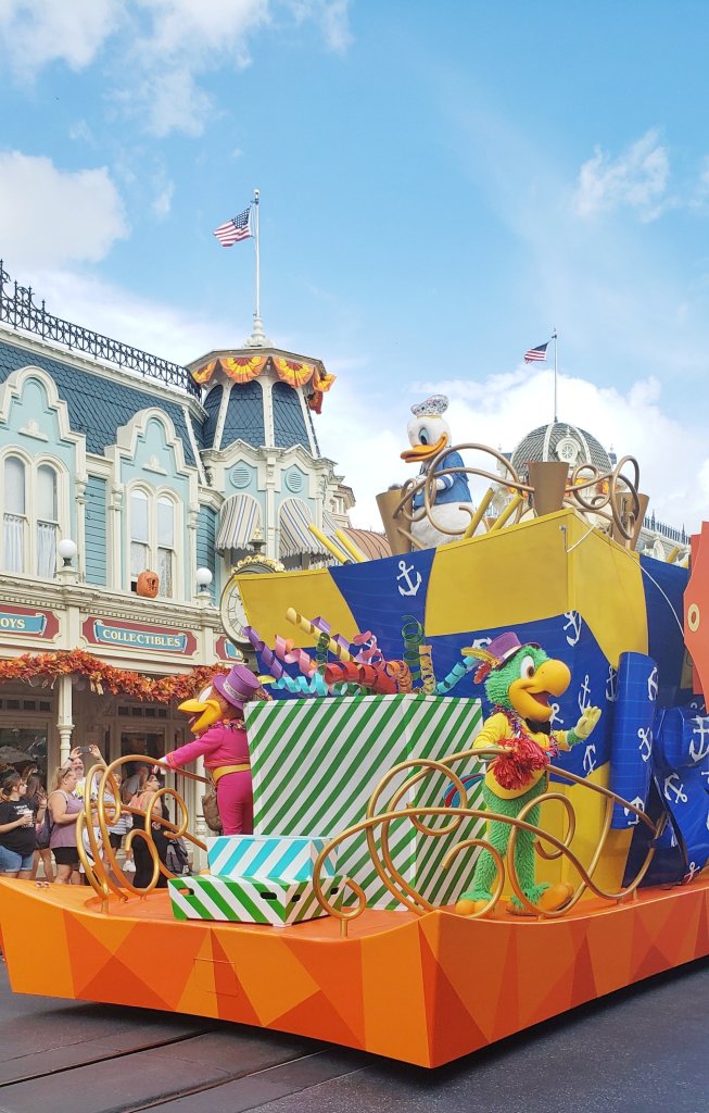 There was some more meandering down Main Street USA as we stopped to look in Cinema, a store that we’ve overlooked before. A friend was checking for a certain item that was only available in parks and I offered to check it out. Unfortunately, it was out of stock, but I enjoyed the detour into a new shop. As we stepped out we caught a few minutes of the new Move It, Shake It, MousekeDance It Parade as it was ending.