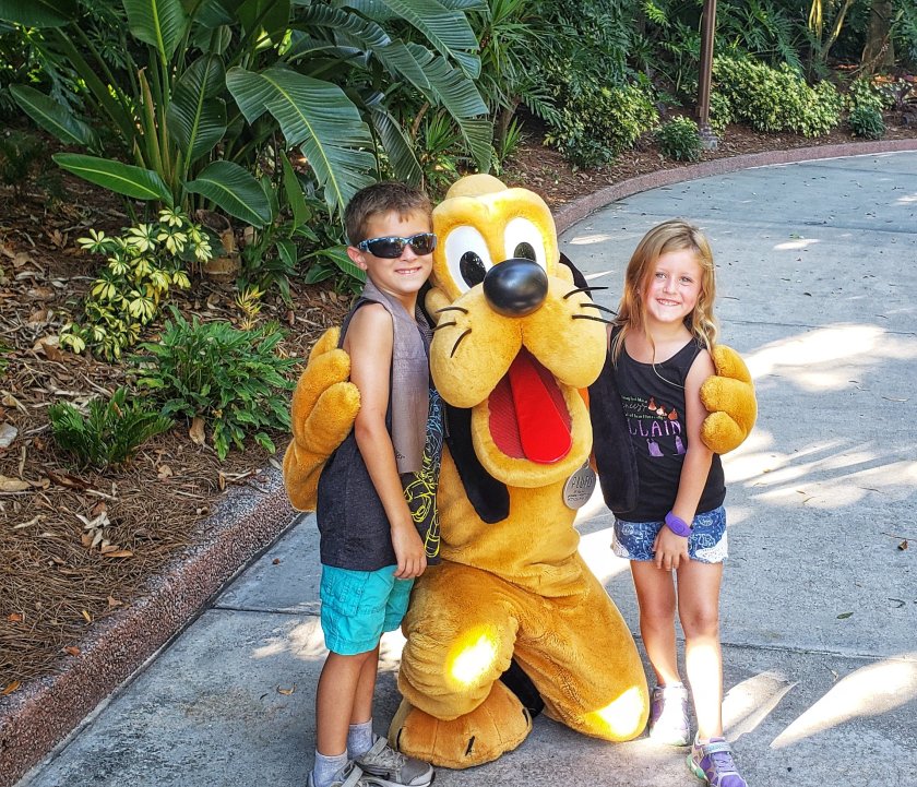 The pretzel stand at the exit of the ride was enticing for the kids asked for another snack and while we were eating the gates near the ride opened up. A Cast Member waved for anyone around to come back and we found Minnie and Pluto waiting for guests to say hi!