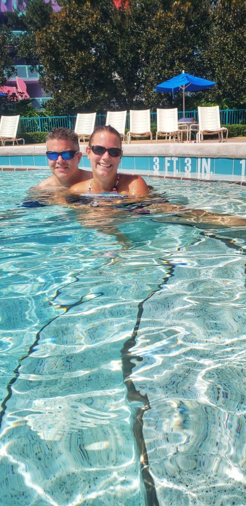 Resting meant a few hours at the pool while the laundry was washing since Grumpy hates to bring dirty laundry back home. We also took some time to watch the Skyliner gliding over the lake and wish that they would do some preview rides!