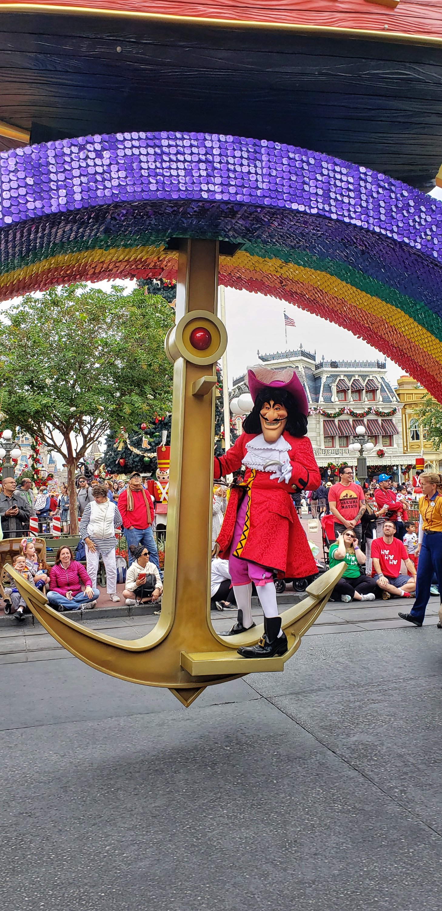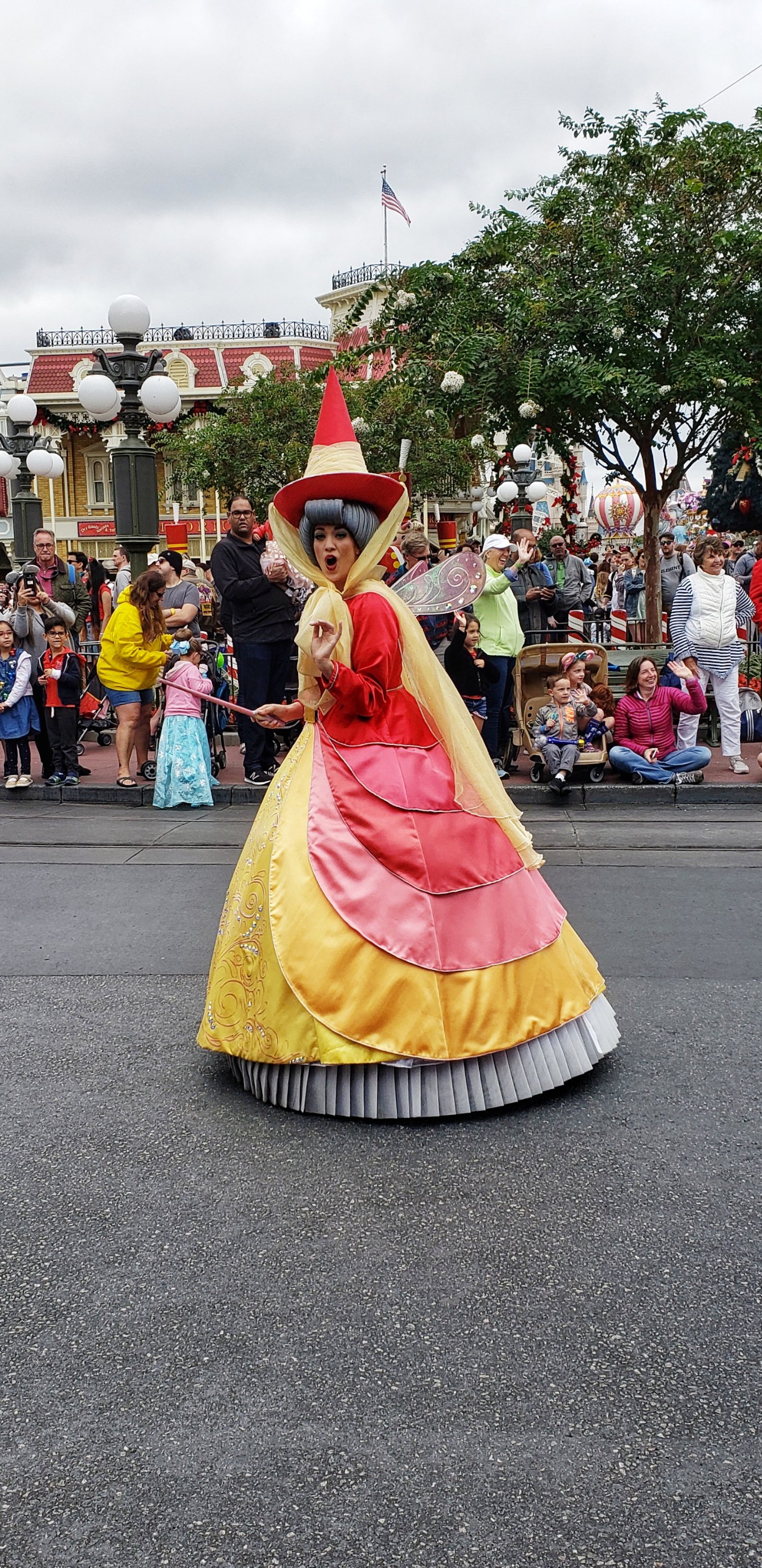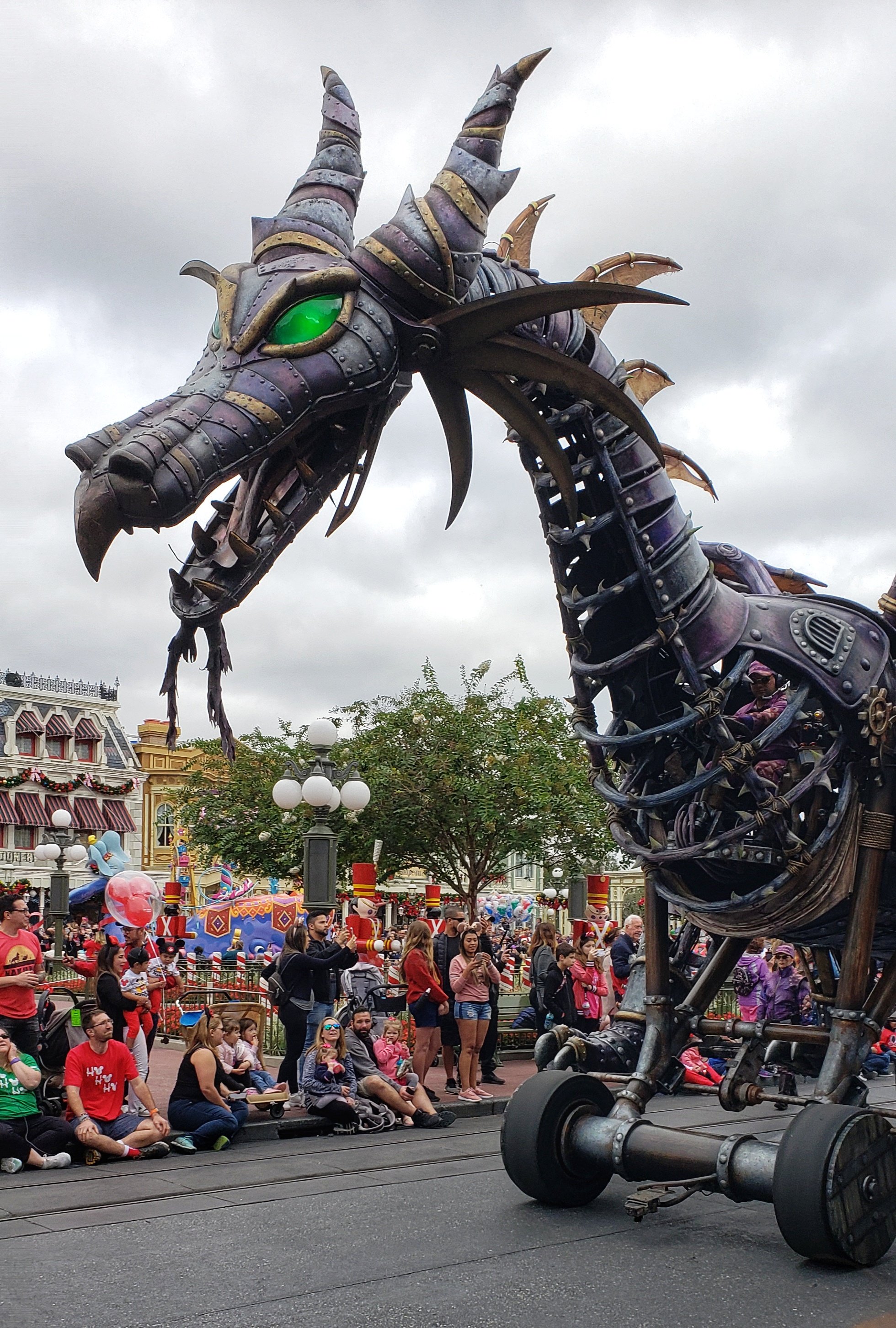 Following lunch, everyone had some different plans. I intended to leave the park and head back to the resort, but the timing ended better to catch a fantastic front row viewing of the Festival of Fantasy Parade. We watched the parade as a family in 2016 during our first visit, and got stuck on a pathway behind a mob of people as it was passing through Frontierland in 2018. I don’t really count that as seeing much. The kids spend most of the time we were “stuck” yelling how they couldn’t see anything. I grab myself a spot next to a trash can. Yes, that’s right, a trash can. That ensured no one was in front of me and also gave me a space to rest a camera while live-streaming the full parade.