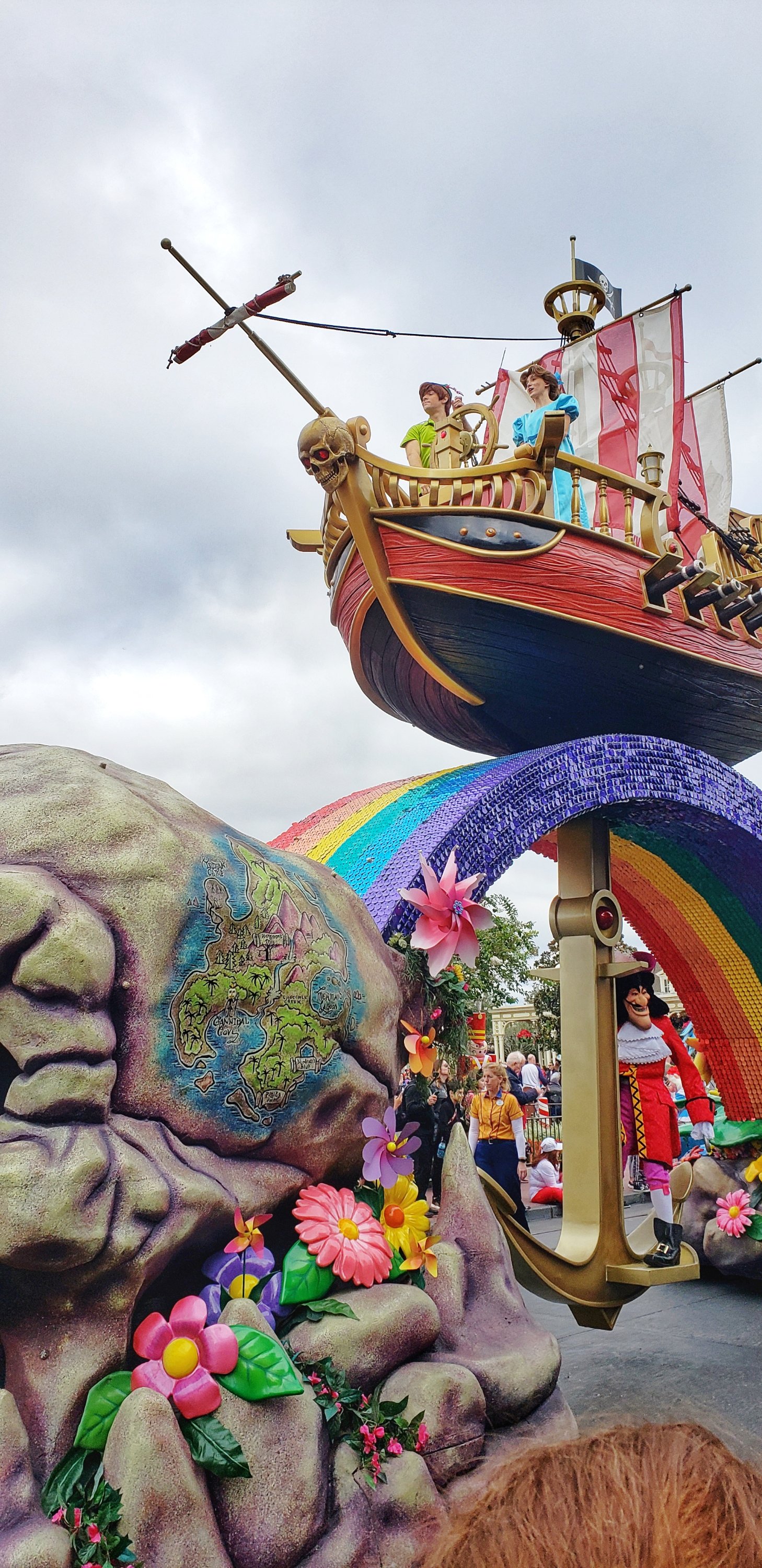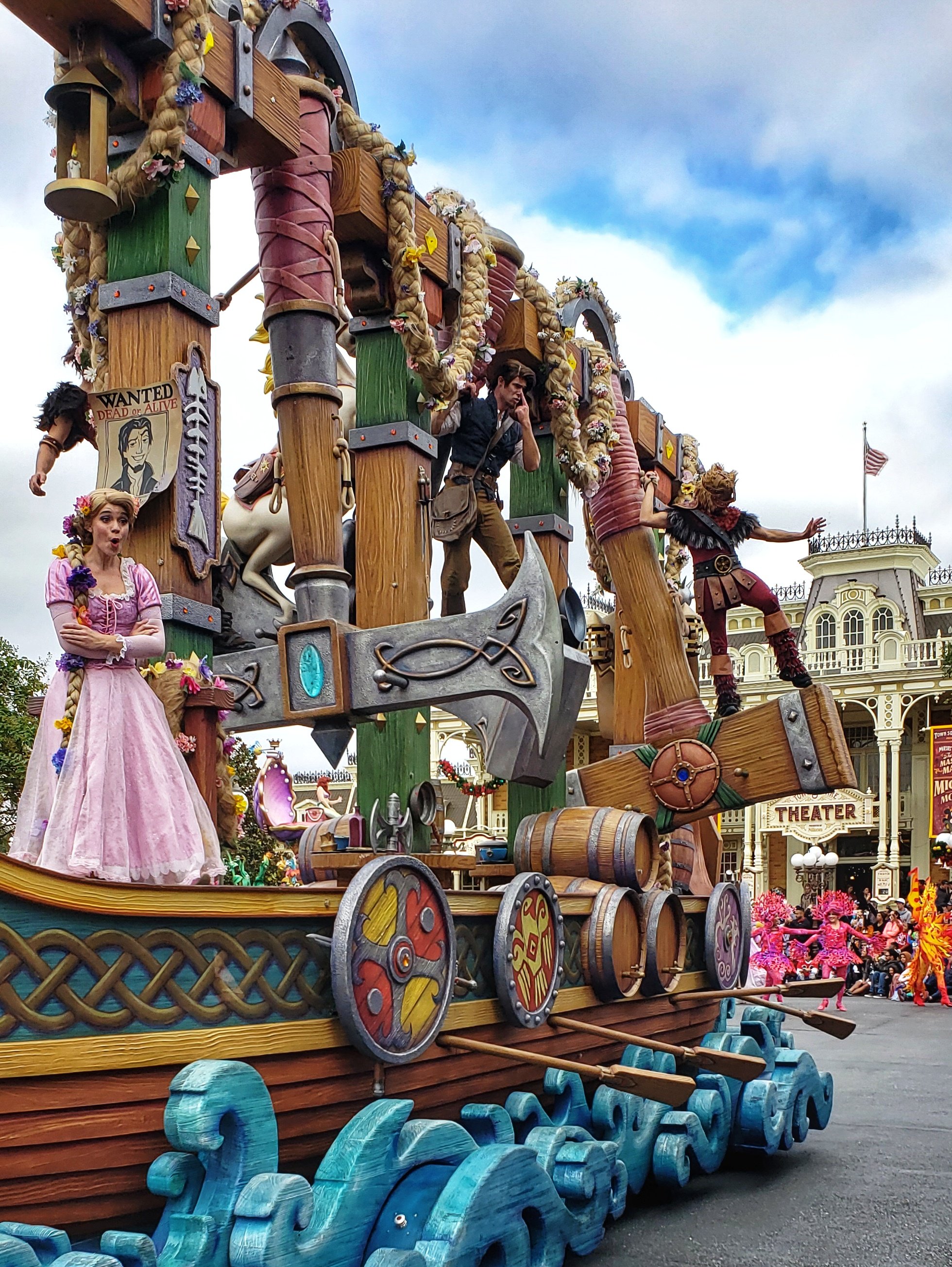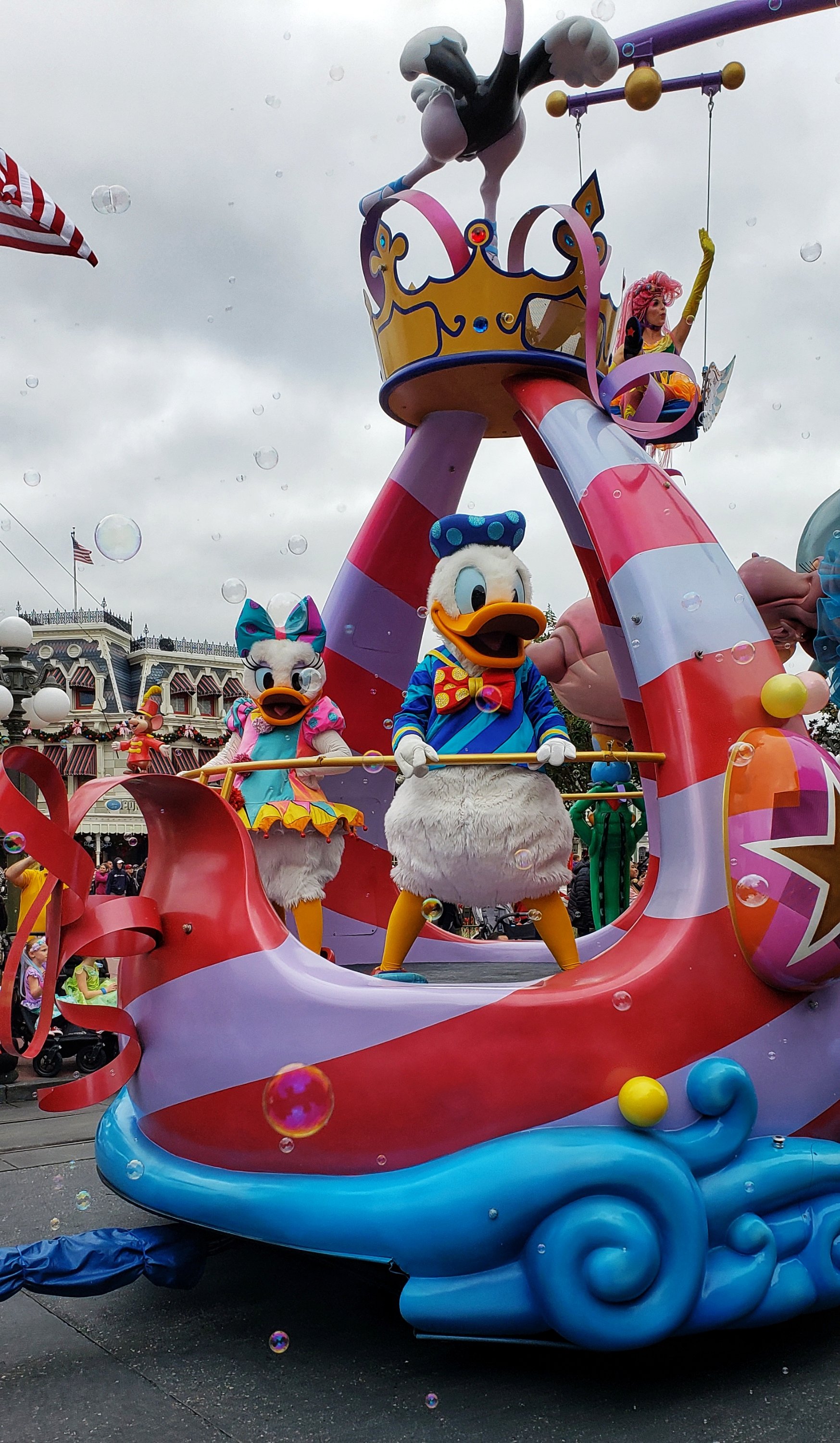 Following lunch, everyone had some different plans. I intended to leave the park and head back to the resort, but the timing ended better to catch a fantastic front row viewing of the Festival of Fantasy Parade. We watched the parade as a family in 2016 during our first visit, and got stuck on a pathway behind a mob of people as it was passing through Frontierland in 2018. I don’t really count that as seeing much. The kids spend most of the time we were “stuck” yelling how they couldn’t see anything. I grab myself a spot next to a trash can. Yes, that’s right, a trash can. That ensured no one was in front of me and also gave me a space to rest a camera while live-streaming the full parade.