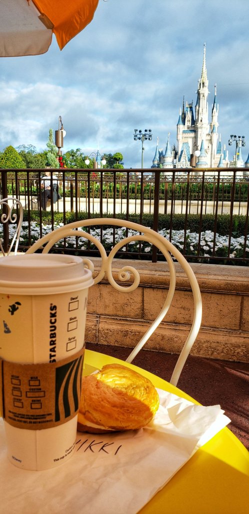 Maddy and I woke up extra early to get to Magic Kingdom. We were on the bus at 7:12am and dropped of at the Magic Kingdom bus station exactly 20 minutes later. This was the earliest I have ever arrived at a park. We had almost 90 minutes before the park would open. In fact, we were so early the gates weren’t even open yet for general guests, however, those with early dining reservations were being let in at a designated entrance. Around 7:45am we were allowed to scan in to enter the park. We had the opportunity to take pictures in front of the train station, and looking down Main Street. It was one of the most magical times on Main Street with so few people entering that early.