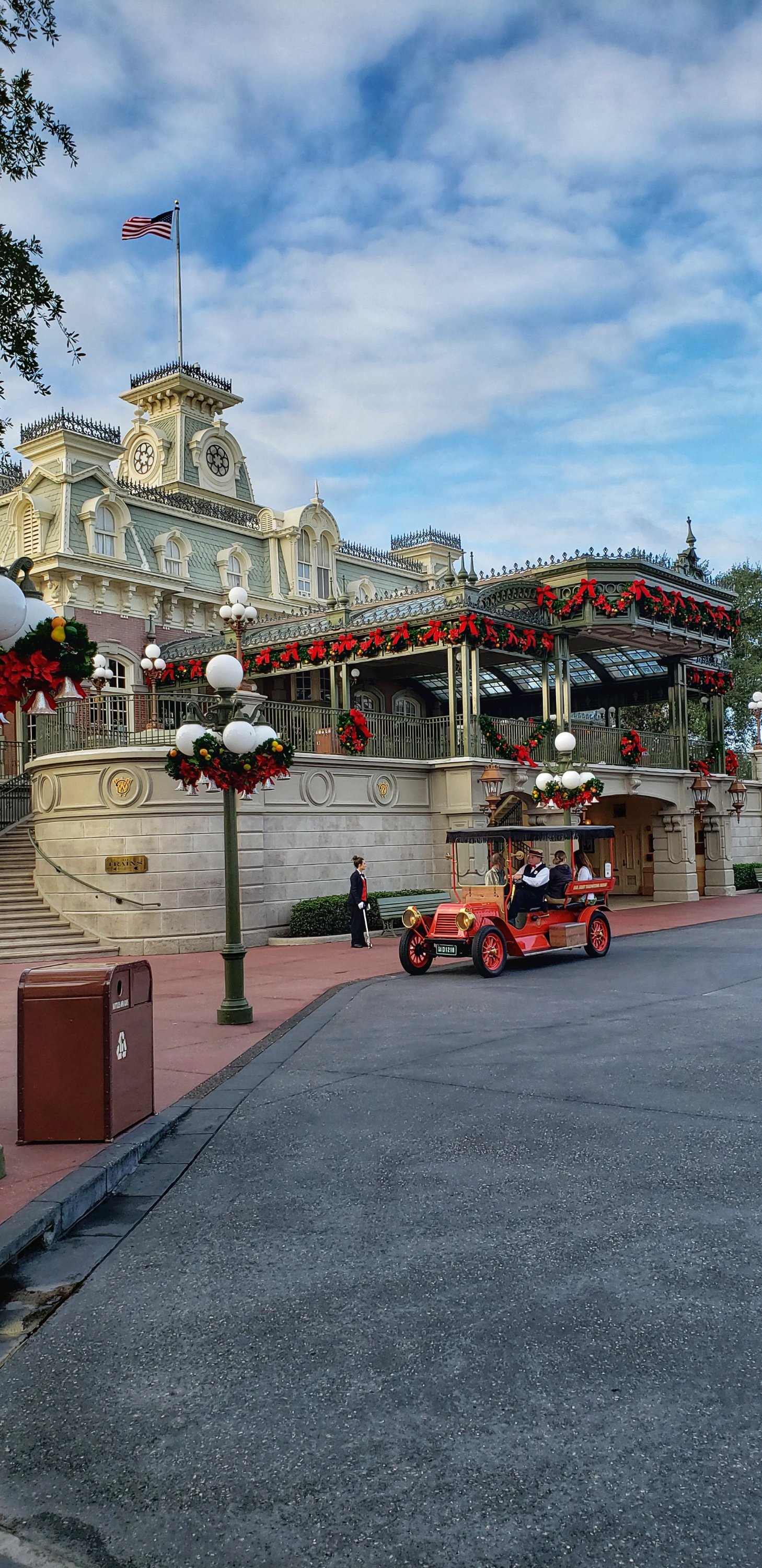 After our picture taking we grabbed breakfast at Starbucks and were surprised to see the Main Street Trolley Show spreading Christmas cheer bright and early!