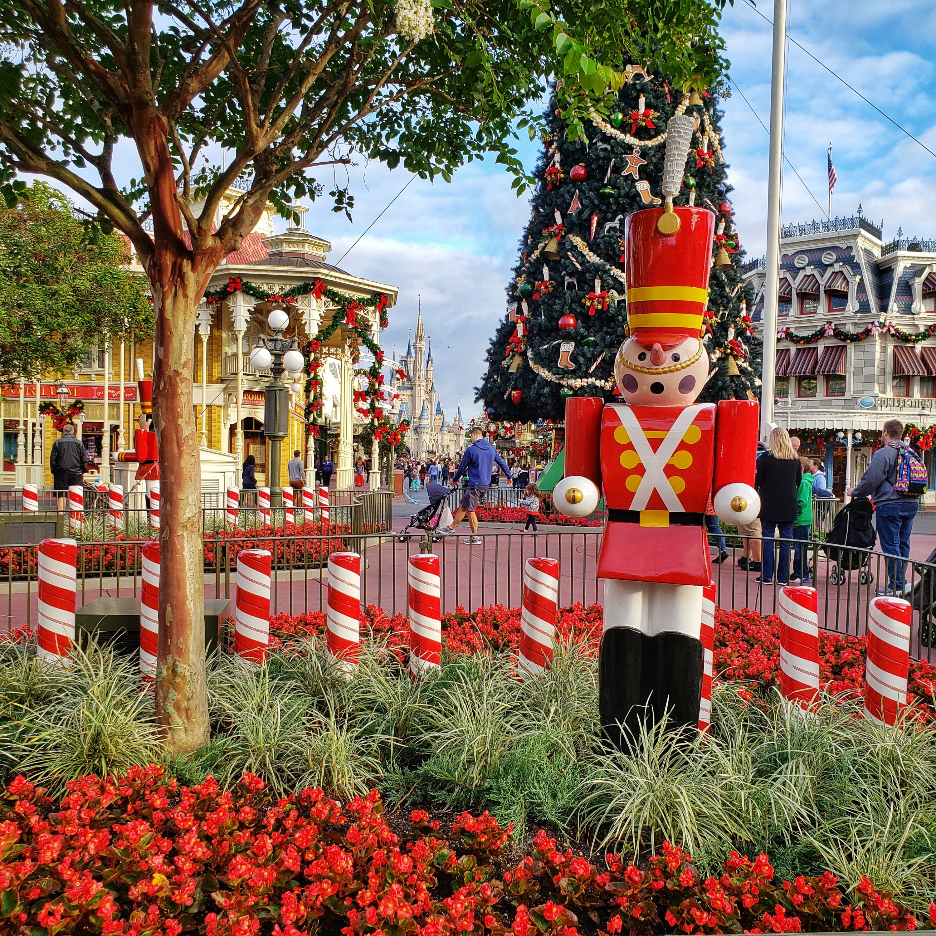 This was a pretty cold Saturday in November, but the park was very crowded. An event, known as Dapper Day was going on in the park. Many people participate by heading to the parks in the fanciest and most refined outfits. There was no way with the cold weather I was getting dressed up. It was actually warmer back home in Ohio than it was in Florida. To make matters worse you can see in most of the pictures it was pretty cloudy all day and it was very windy. (Around 4pm I text my husband that the “feels like” temperature was 53°, by the end of the evening it had dropped to 45°.)