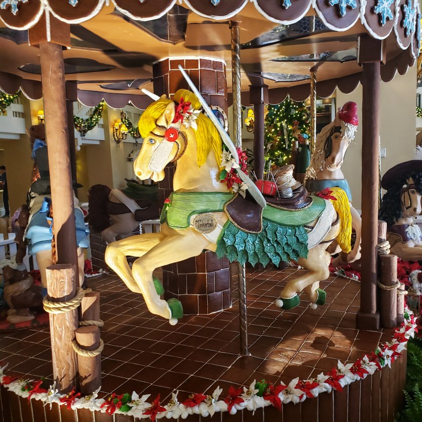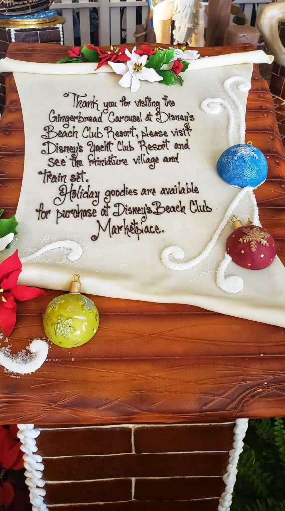 We visited the Beach Club Resort to see the Christmas decorations, namely, the Gingerbread Carousel. The design work continues to leave me in awe just as with the Gingerbread Cabin at Wilderness Lodge and famous Gingerbread House at the Grand Floridian.