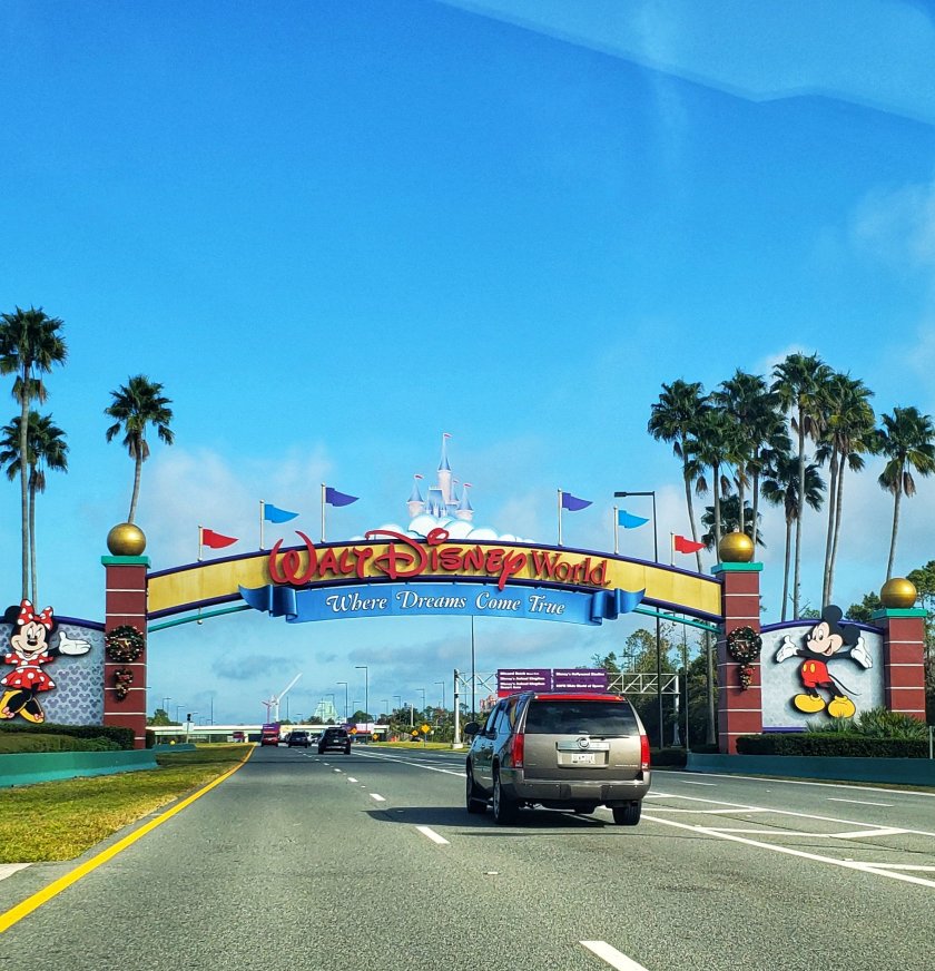 I foolishly thought they would sleep on the airplane, but was very mistaken. Our inbound flight actually took us to Tampa. The flight was filled with even more questions as I continued to give the rundown of our long weekend trip plans. A friend also flew on the flight and drove us to Orlando. The entire drive was gray and cloudy until about two minutes before we arrived at the Walt Disney World main gate. It was like the magic switch for our trip was turned out. Blue skies greeted us at the gate! During the drive I also checked the app for any FastPass+ changes and was able to get Slinky Dog Dash. The kids were now elated.