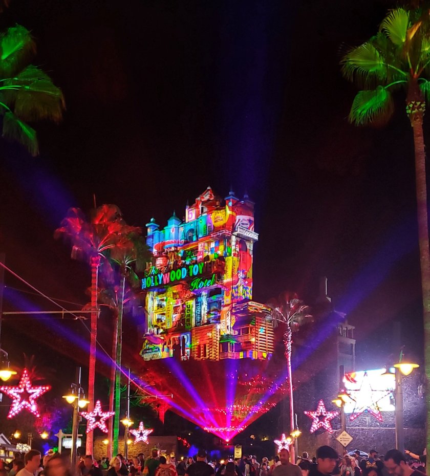 We took a few minutes to clean up and they asked to head back to Hollywood Studios to see the “light show” (Sunshine Seasons Greetings) I had told them about. We jumped back on a bus to the park. The driver that dropped us off confirmed the buses run a pretty timely schedule of every 30 minutes, so we wanted to time it just right so we could catch a ride back and not wait too long.