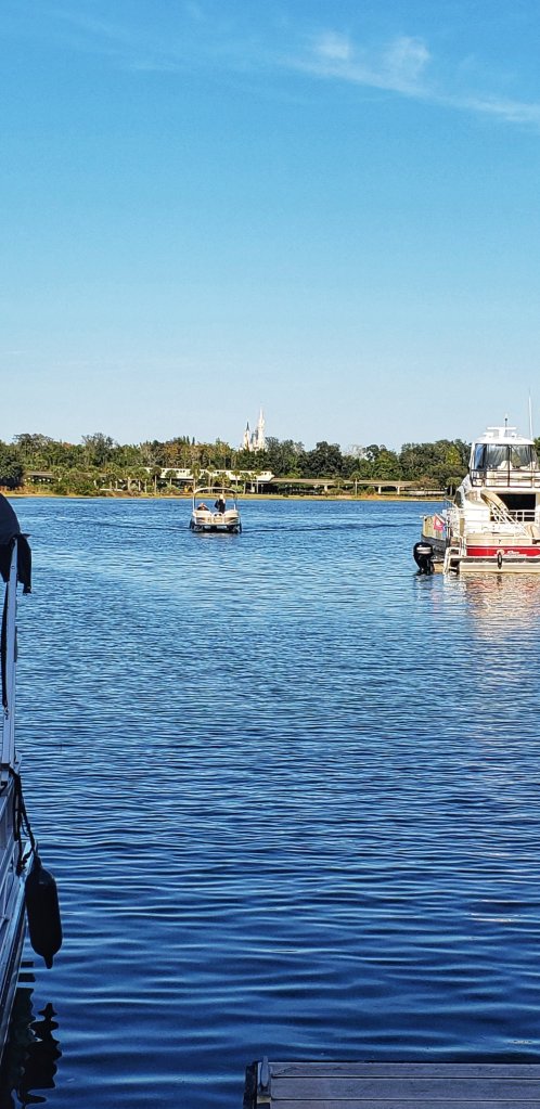On my trip a few weeks back, I made it to the Grand Floridian to see the Gingerbread House and the kids loved the idea of it. We needed some real food too. We took the long way by doing a Monorail look. On the relaxing ride around I placed a mobile order to pick up a very late lunch/early dinner at Gasparilla Island Grill while at the hotel. I love eating here because we always find a seat outside the restaurant along the waterfront. It provides a perfect view of the Castle and depending on how many boats are docked of Space Mountain too.