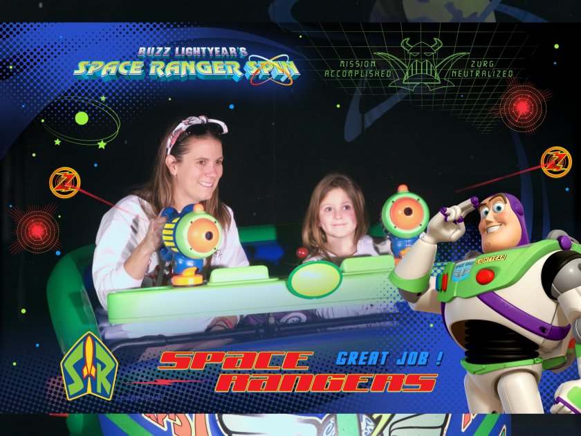 The crowds were ready to enter Tomorrowland. We lined up with no rushing. We made our way through several rides: Space Mountain, Buzz Lightyear Space Ranger Spin, The Mad Tea Party, Dumbo, and Barnstormer. Other than waiting about 15 minutes for Space Mountain we walked right on everything else.