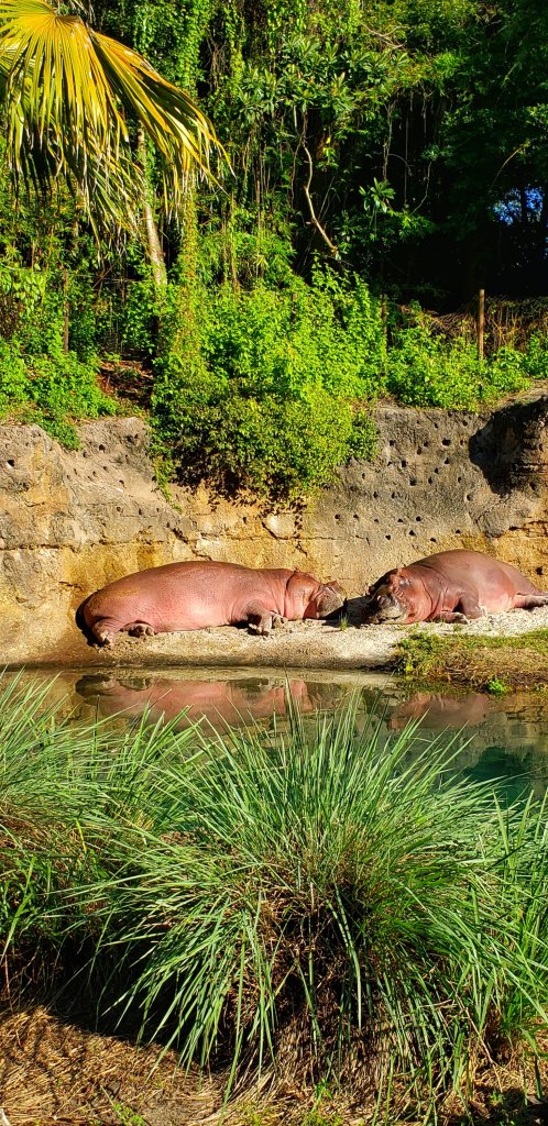 The early morning Kilimanjaro Safari ride always seems to be one of the best. Our FastPass+ let us board right away. Morning proved to be the right time again. So many animals were awake and moving about the savannah. Some of them refused to leave our path creating a comical delay.