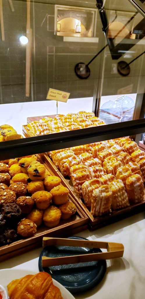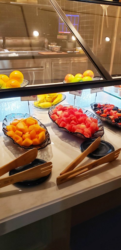 Ale & Compass has a unique dining style. It’s partially buffet with a a plated meal included. I liked this style. We were able to have our fill of fruits, a variety of muffins, croissants, danishes, and breads, along with a light selection of cheeses, meats, and oatmeal. The menu for plated options included Mickey waffles making our decision a very easy one!